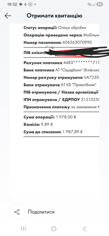 Оплата о 08:42 602 грн.